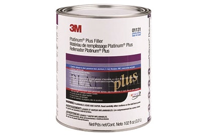 Mix and apply filler per the manufacturer’s recommendation. Apply a tight coat of body filler to the repair area. This will ensure the substrate is fully wetted-out. Then build up the area with thin wet-on-wet filler coats. Make sure to keep the body filler within the primer feather-edge area to prevent repair mapping. Cure the body filler 15 to 20 minutes at 75°F/24°C.
