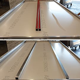 Stiffener to panel assemblies refers to the process of applying reinforcing bars, known as stiffeners, to the back of architectural facade panels to provide extra support and rigidity. They allow the panels to lay straight, withstand wind and severe weather conditions and prevents them from losing their structural integrity over time.