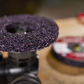 Using a wire brush is a tried-and-true way to remove paint from metal, having said that, Nathan’s top pick as an alternative to wire brushes is our Scotch-Brite™ Clean & Strip Pro Disc XT-DC. A wire brush will eventually remove paint from a workpiece, however the Scotch-Brite™ Clean & Strip Pro Disc XT-DC gets down to the bare metal almost instantly and is a better option.