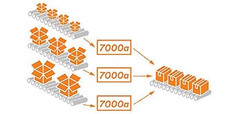 For sealing long runs of identical boxes, place one adjustable case sealer on each line.