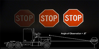 Elevated seating positions result in a higher angle relative to headlights. In this demonstration, you'll see how elevated seating positions impact sign visibility and how higher-performing sign sheeting can help.