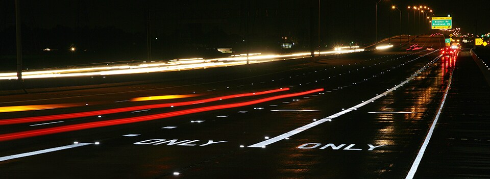 As depicted below, parts of the non-wet retroreflective road markings virtually disappear in the dark when they become covered in water, making the driver unaware the upcoming lane is a left turn lane. With diverse and aging populations, driver-assisted and automated vehicles and new inexperienced drivers converging on the roads, having pavement markings that are visible to both humans and automotive cameras in a wide range of conditions is more critical than ever.